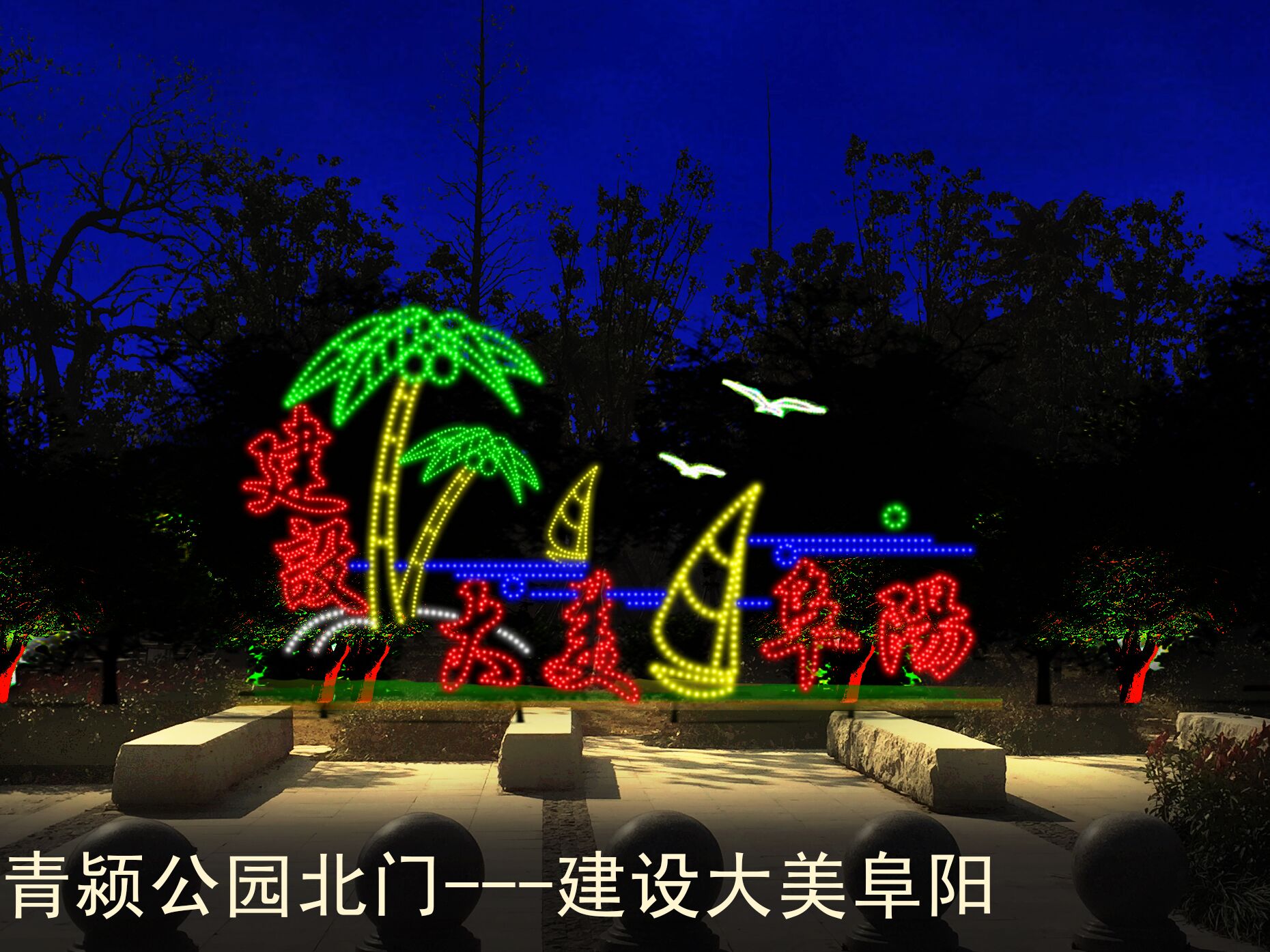 阜陽市公共公園及渠劃島景觀小品設(shè)計(jì)及施工工程。